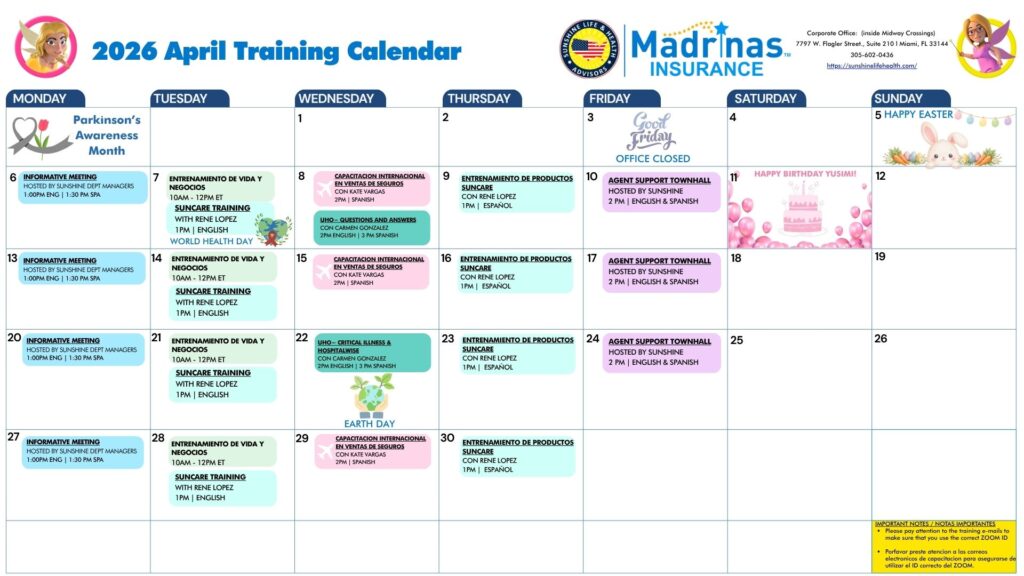 Florida Courses information / Cursos Florida Información Información Educación Continua Agende de seguros / Continuing Education for Insurance Agents Information Calendario de EntrenamientosTraining Calendar Calendario de Anual de VidaLife Division Annual Calendar Calendario de la Caravana Caravana CalendarClick here: Requisitos – Requirements Conferencia de los lunesMonday Conference Call Departamentos y Personal de Las MadrinasLas Madrinas Departments & Staff Sheet Información sobre los Centros MédicosInformation about Medical Centers Cómo crear tu portal How to set up your portalClick para ir a tu portalClick to access your portal Servicios por DepartamentoServices by Department MISCELLANEOUS Entrenamiento de WhatsApp BusinessWhatsApp Business Training ¡Tú puedes lograrlo!You can do it! YouTube Channels & Playlists Contracting News Wellpoint | YouTube Playlist ZOHO | YouTube Playlist Supplemental Products | Private Insurance