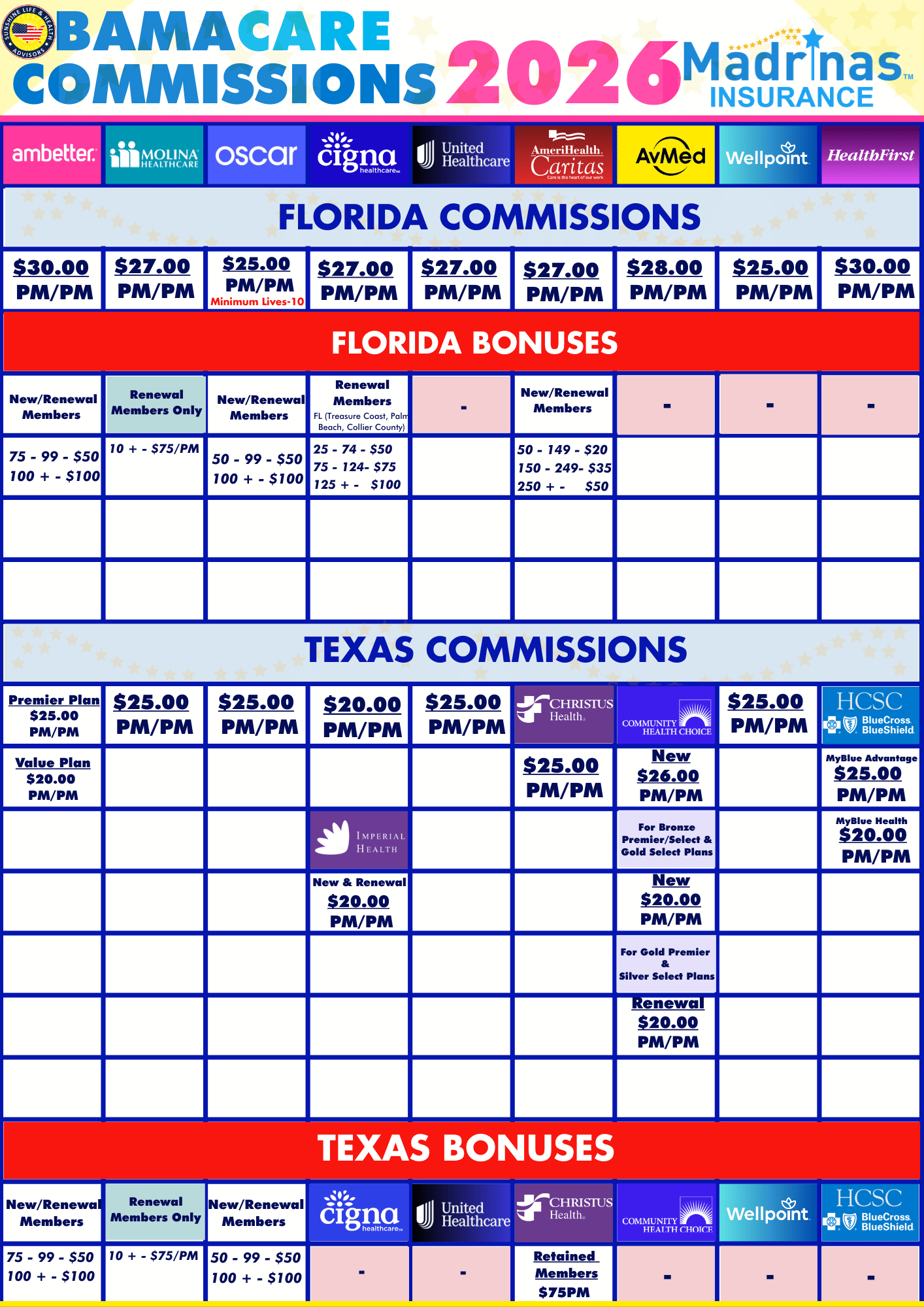 2026 ACA Commissions / Bonus Flyers for all states and carriers coming soon!